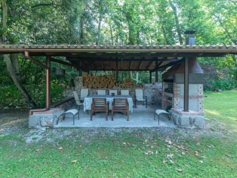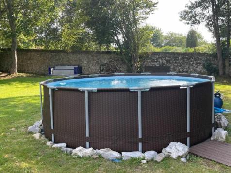 La finca tiene 2 alturas, en la parte baja se encuentra la vivienda con jardín delantero y porche y en la parte trasera un cenador con una parrilla perfectamente acondicionada para grandes barbacoas y en la parte superior hay columpios, una piscina (estructura metálica y pvc) y un banco.