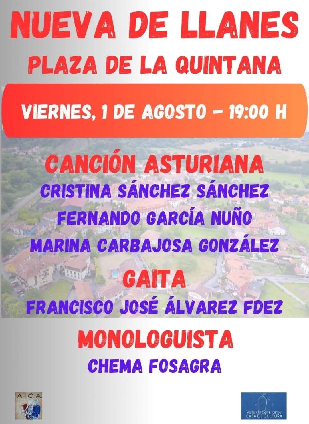 Contaremos con la presencia de los cantantes de canción asturiana Cristina Sánchez Sánchez, Fernando García Nuño y Marina Carbajosa González, el gaitero Francisco José Álvarez Fernández y el monologuista Chema Fosagra.