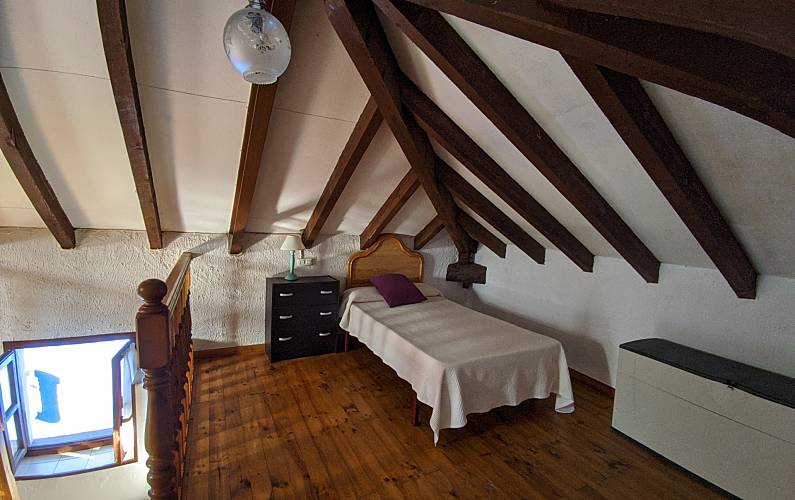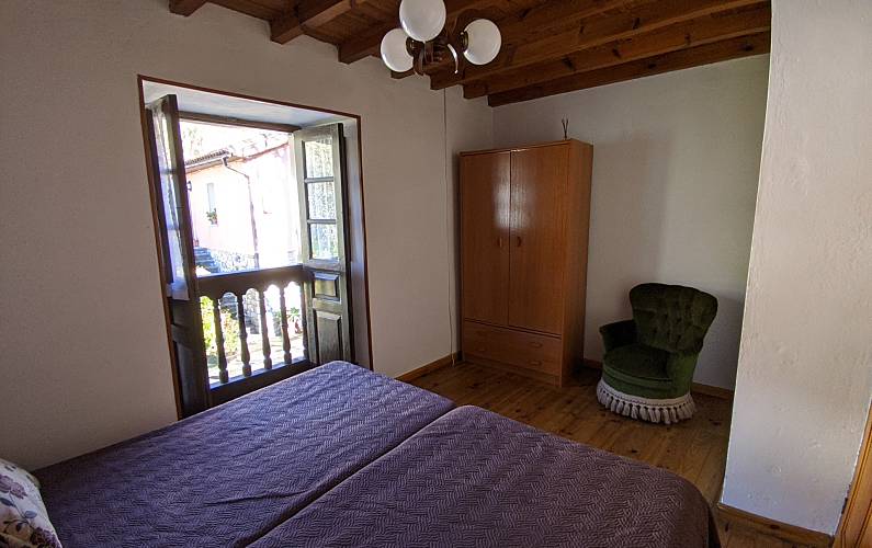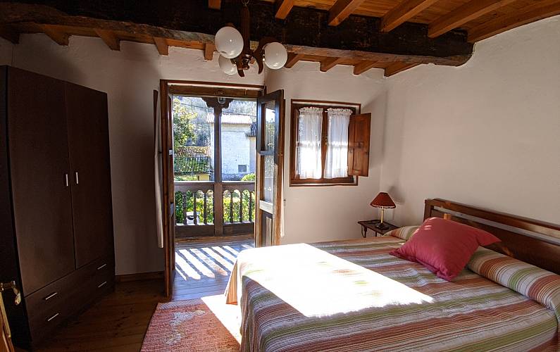 La planta media alberga un baño completo, una cómoda habitación matrimonial con acceso directo a un tradicional corredor asturiano y una habitación con dos camas individuales para garantizar el confort de todos los huéspedes.