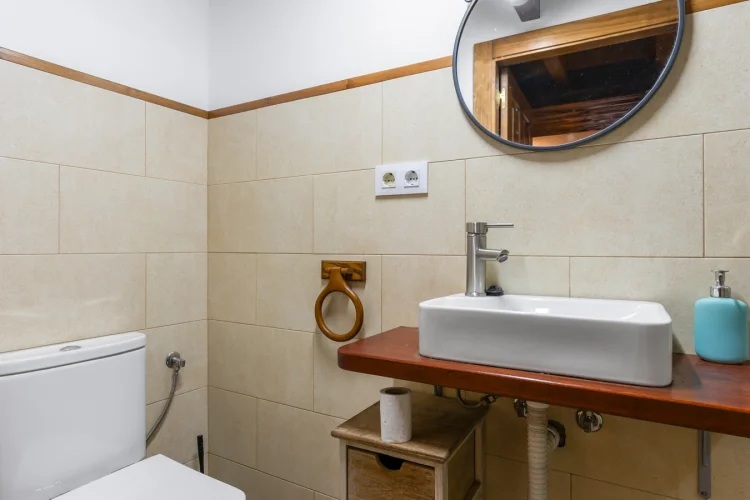 La casa cuenta con tres baños completos, uno de ellos equipado con una relajante bañera de hidromasaje, perfecta para disfrutar de un baño de espuma tras un intenso día de turismo.