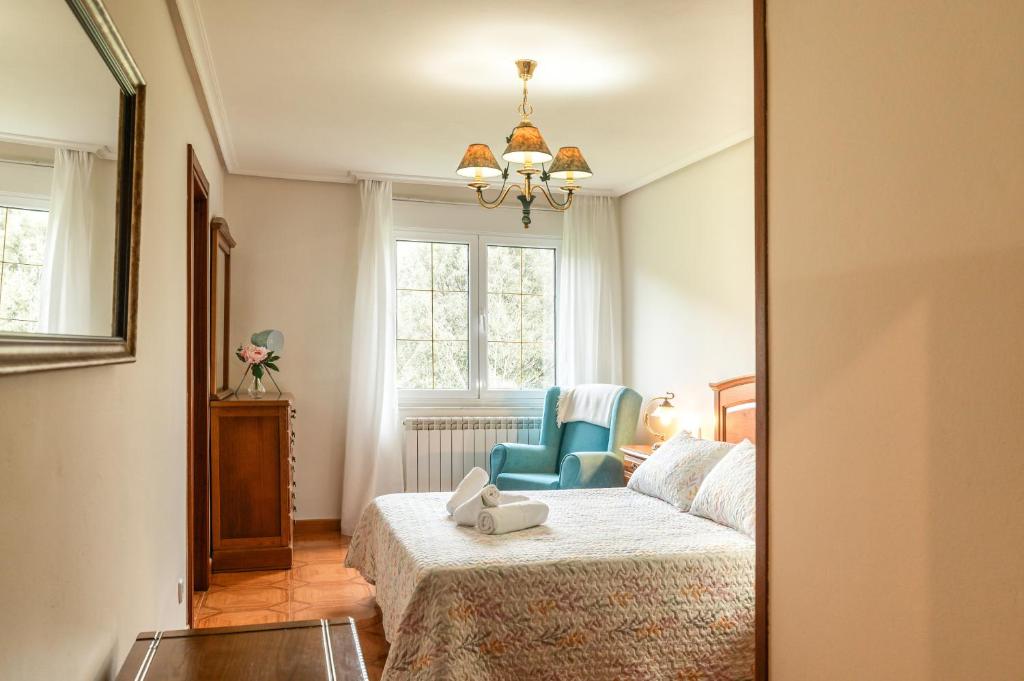 En cuanto a la ubicación, estamos a 500 metros del comienzo de la ruta, El camín encantau, donde paseas a través de paisajes únicos aprediendo ademas detalles de los personajes de la mitología típica asturiana.