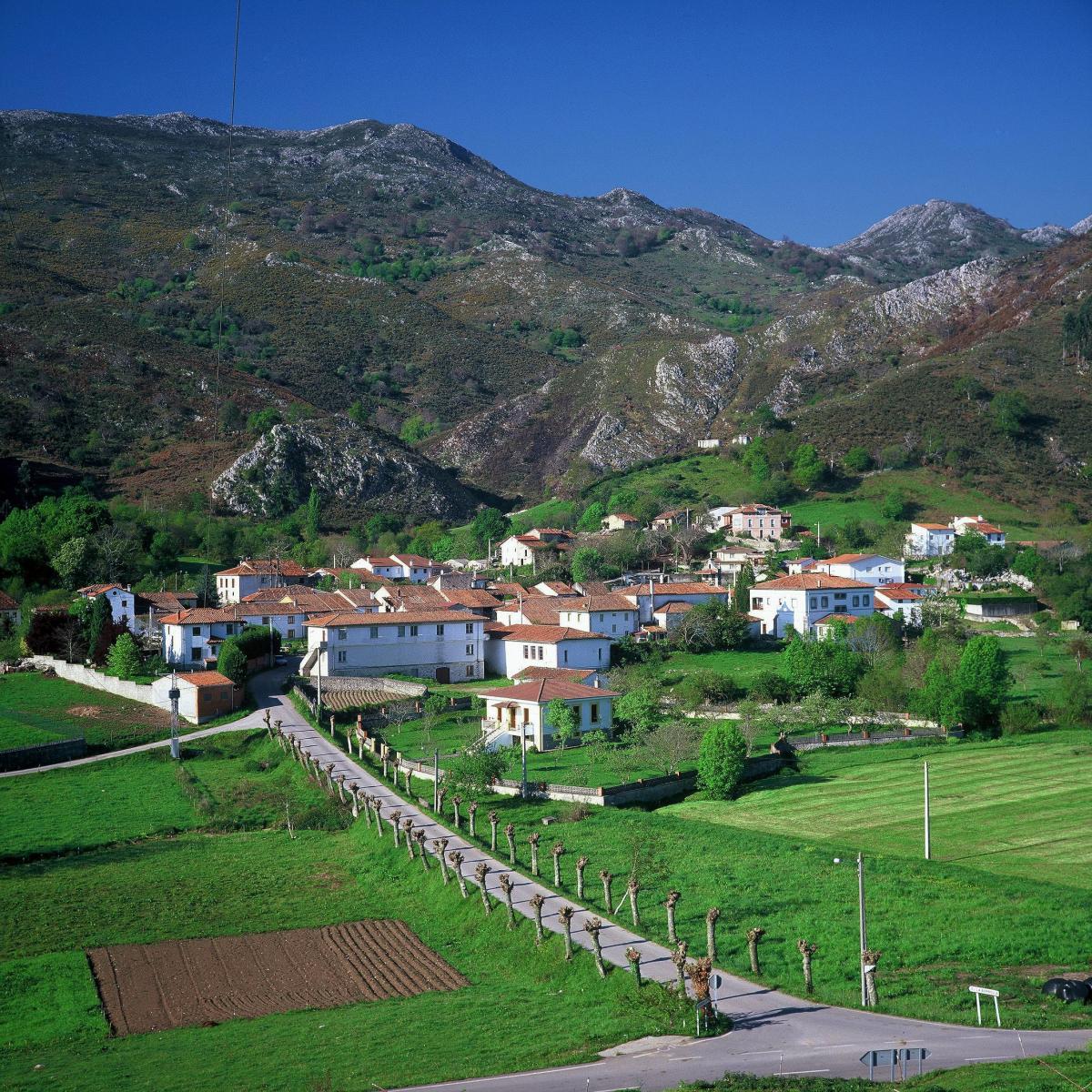 Se encuentra a unos 16 km de la villa de Llanes y a unos 5 km de la costa, en el llamado Valle Oscuru.