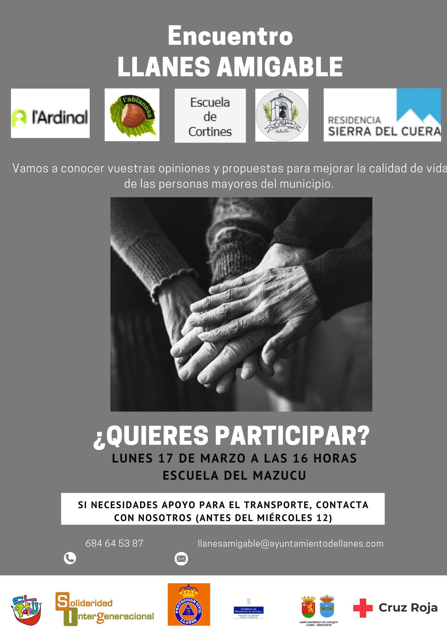 El evento está abierto a nivel comunitario. Aquellas personas que precisen de apoyo para el transporte pueden comunicarlo a través de las asociaciones de las zonas de referencia: La Ablanosa, L´Ardinal y Mazucu Rebulle, o al Ayuntamiento de Llanes a través del teléfono: 684 645 387 y/o del correo electrónico: llanesamigable@ayuntamientodellanes.com