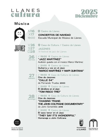 19:00 h. - Casino de Llanes: “Jazz Martínez”. Audición guiada con el músico Marco Martínez.