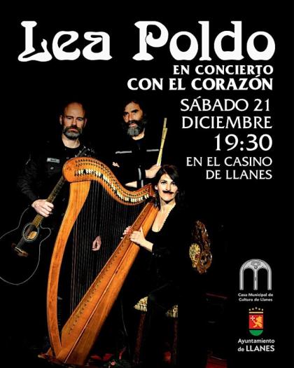 "Con el corazón" es la serie de conciertos con los que Lea Poldo, el proyecto de canciones al arpa que la asturiana Sofía Fernández iniciara hace diez años, toca a su fin.Marcos Muslera (piano, guitarra y bajo) y Agustín Pilarte (batería), ambientan su directo con temas que van desde la balada más romántica a una oscura canción de cuna; desde un pegadizo pop-folk al blues del Delta del Carrocero.Durante el concierto se escucharán temas de sus trabajos Cantos de corazón, hígado, pulmón (2015), Libélula, luciérnaga, dragón, (2018), Canciones para Eno & Sistersongs for Zu (2023), un tema nuevo y una versión.