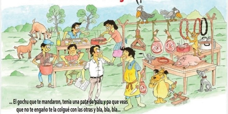 A partir de las 13.30 horas, comida tradicional de la matanza: sopas de hígado, morcilla frita, adobo, lomo, turrullos, costillas.... Precios populares.