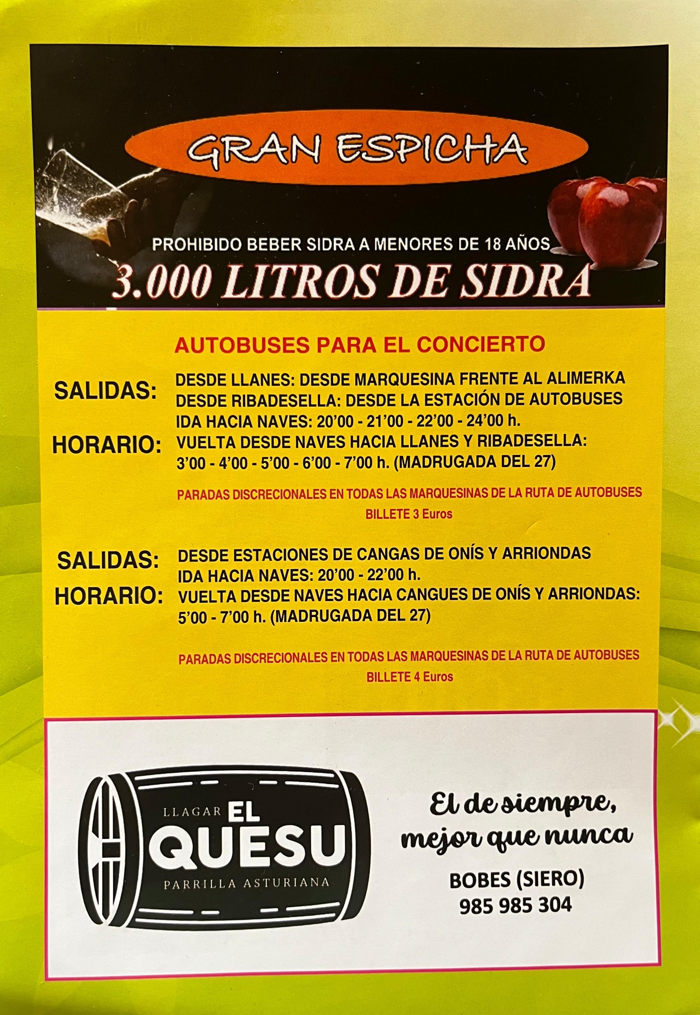 Vuelta desde Naves hacia Llanes y Ribadesella: 3.00, 4.00, 5.00, 6.00, 7.00 h. (madrugada del 27).