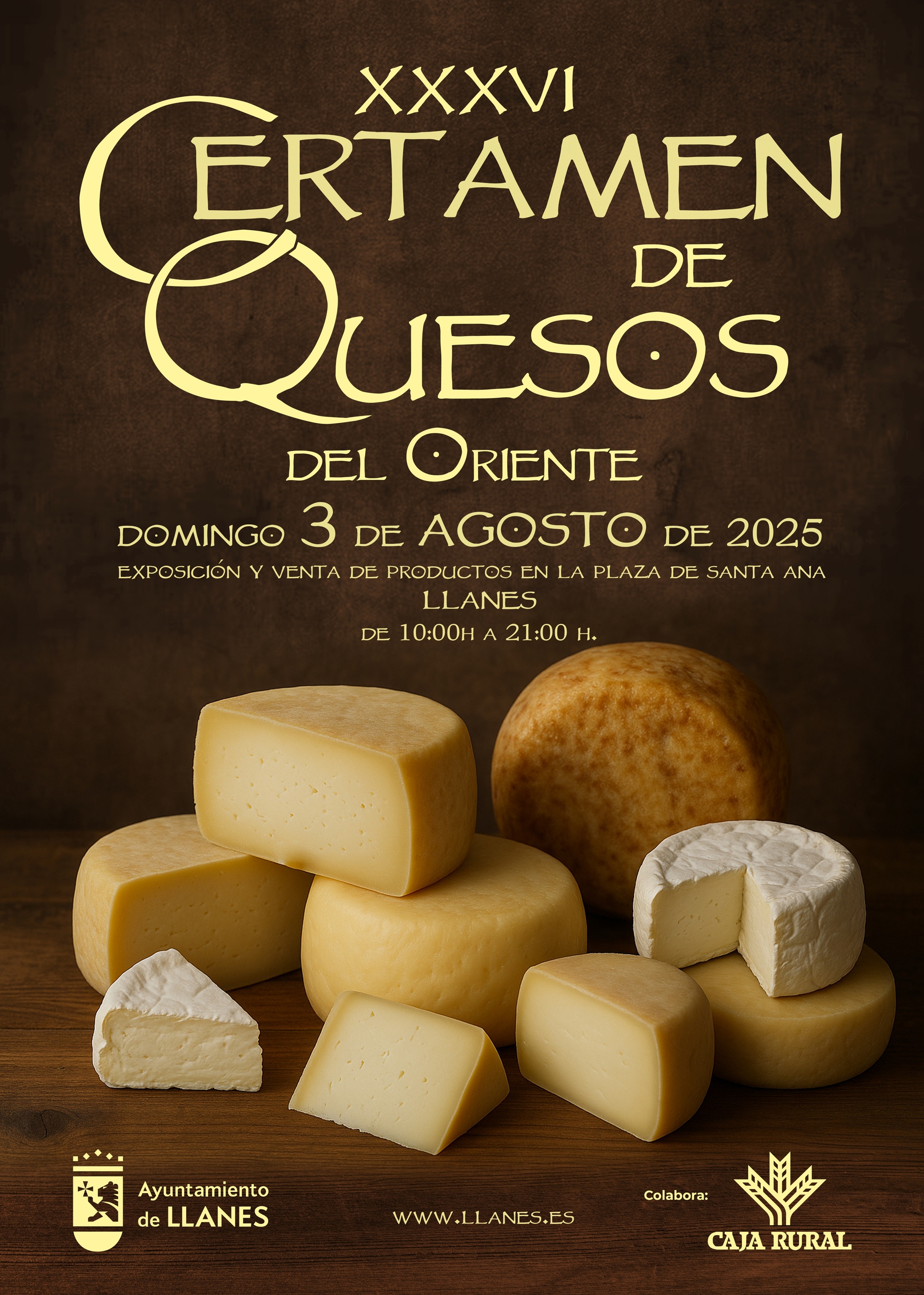 El XXXVI Certamen de Quesos del Oriente se celebra el domingo 3 de agosto. La ubicación de la exposición y venta de productos es en las plazas de Santa Ana, en el casco antiguo de Llanes, de forma continuada en horario de 10:00 a 21:00 horas.