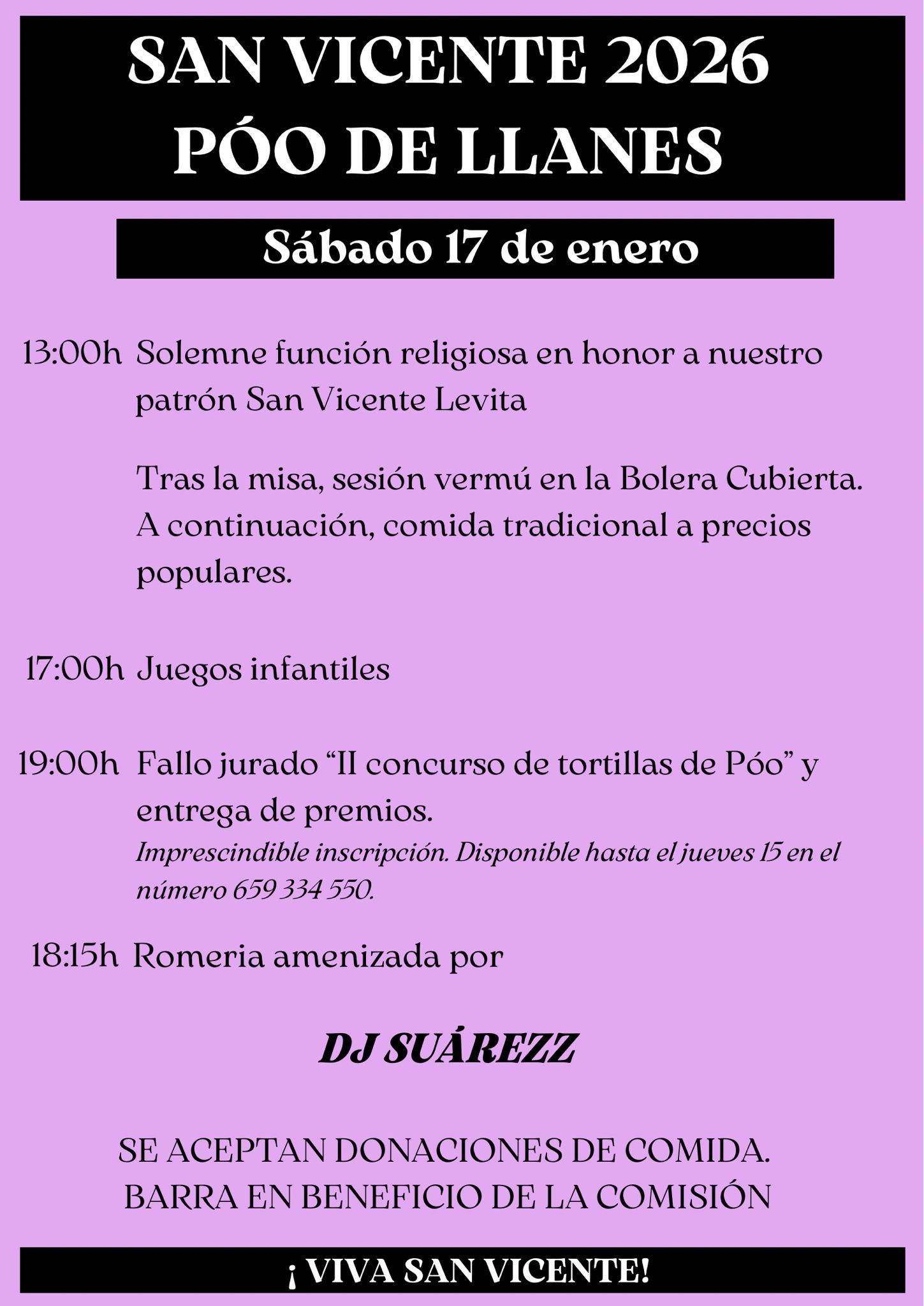 19:00 h. Fallo jurado "II concurso de tortillas de Poo" y entrega de premios.
