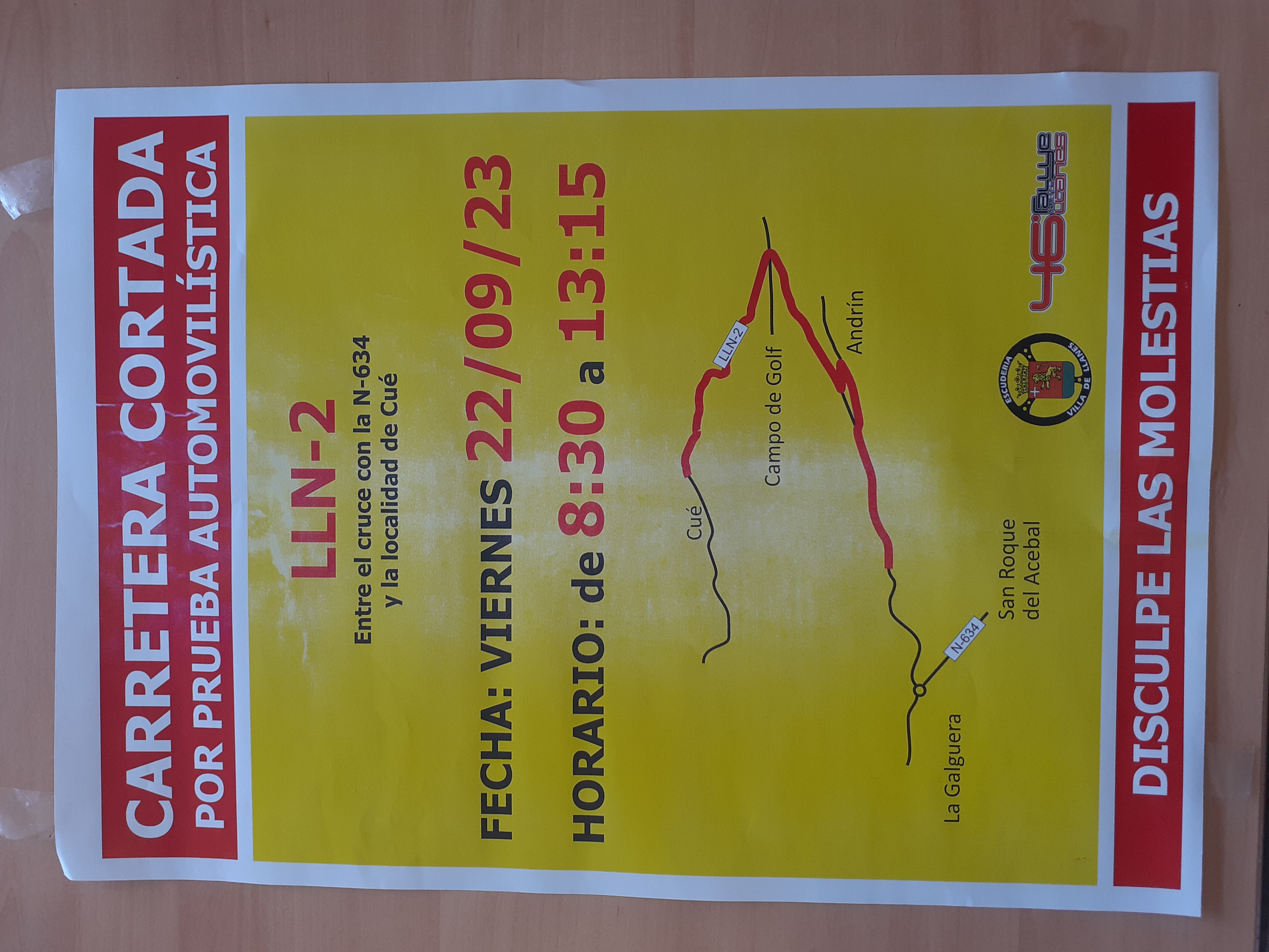 CON MOTIVO DE LA CELEBRACIÓN DE LA PRUEBA AUTOMOVILISTICA PARA EL RALLY VILLA DE LLANES, EL CAMPO PERMANECERA CERRADO EL DÍA 22 DE 8:30 A 13:15.