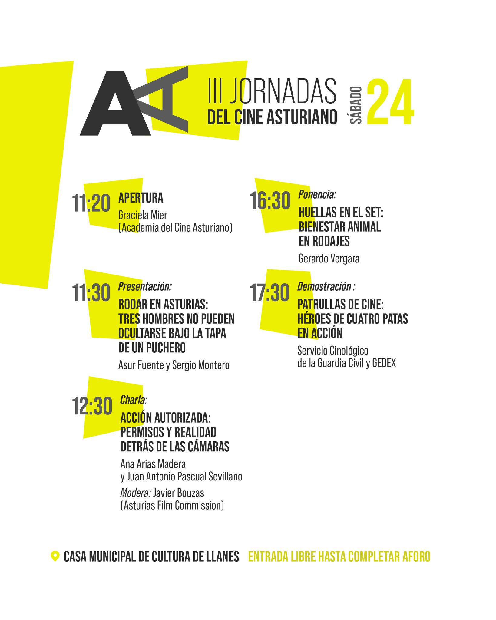 11:30 · Presentación: Rodar en Asturias: “Tres hombres no pueden ocultarse bajo la tapa de un puchero” — Asur Fuente y Sergio Montero.