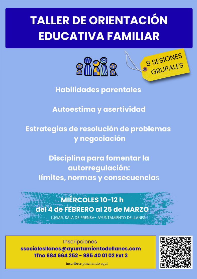 Los ayuntamientos de Llanes y Ribadedeva impartirán un Taller de Orientación Educativa Familiar, dirigido a todas las familias de ambos municipios con niños y/o niñas que estén cursando Educación Infantil, Primaria o Secundaria.