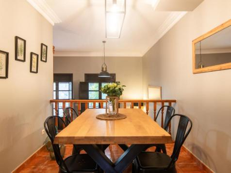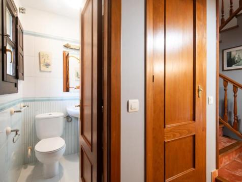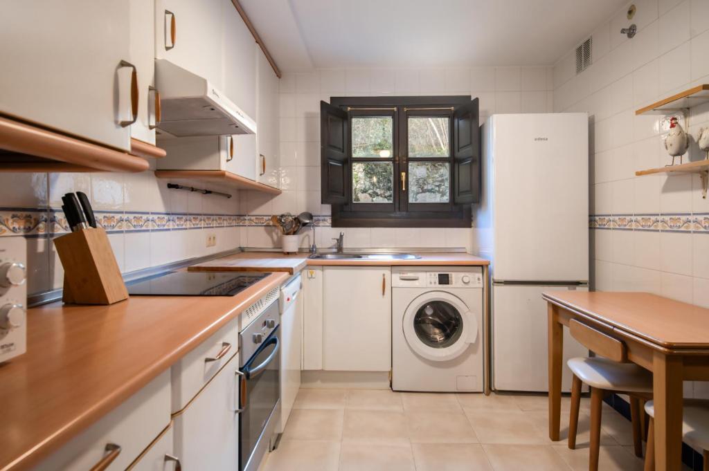En la planta baja se encuentra la cocina que está equipada con  microondas, frigorífico, horno eléctrico, lavavajillas, vitrocerámica, campana extractora, cafetera, batidora eléctrica y servicio completo de menaje.