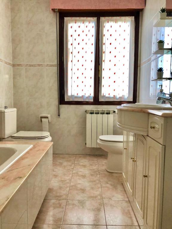 El jardín de Aleyda es una vivienda vacacional que se encuentra en el centro de Llanes, en el tradicional barrio del Cueto, a unos pasos de la calle principal donde están todos los comercios, restaurantes y sidrerías de la villa marinera de Llanes. Nuestro concejo cuenta con 30 playas y nuestra casa se encuentra a tan solo 700 metros de las playas del Sablón y Puerto Chico. El jardín de Aleyda se alquila de forma íntegra y se distribuye en 2 plantas con capacidad hasta 8 personas. Tiene un bonito jardín con columpios y un porche para disfrutar de las comidas o cenas en el exterior. Se distribuye en planta baja donde se encuentra la cocina que tiene acceso directo al jardín, un dormitorio con cama de 150 cm., un baño con ducha, comedor y cuarto de lavandería. En la primera planta se encuentra el salón con amplio ventanal y bonitas vistas a la sierra del Cuera y un diván con 2 camas de 80 cm., un dormitorio con cama de 135 cm., otro con cama de 150 cm. y el dormitorio familiar con 2 camas de 90 cm. y cama de niño de 70x160 cm. Hay otro baño completo con bañera. Nuestra vivienda está equipada con ropa de cama, toallas, menaje de cocina y Tv. Parking para 1 o 2 coches(consultar)