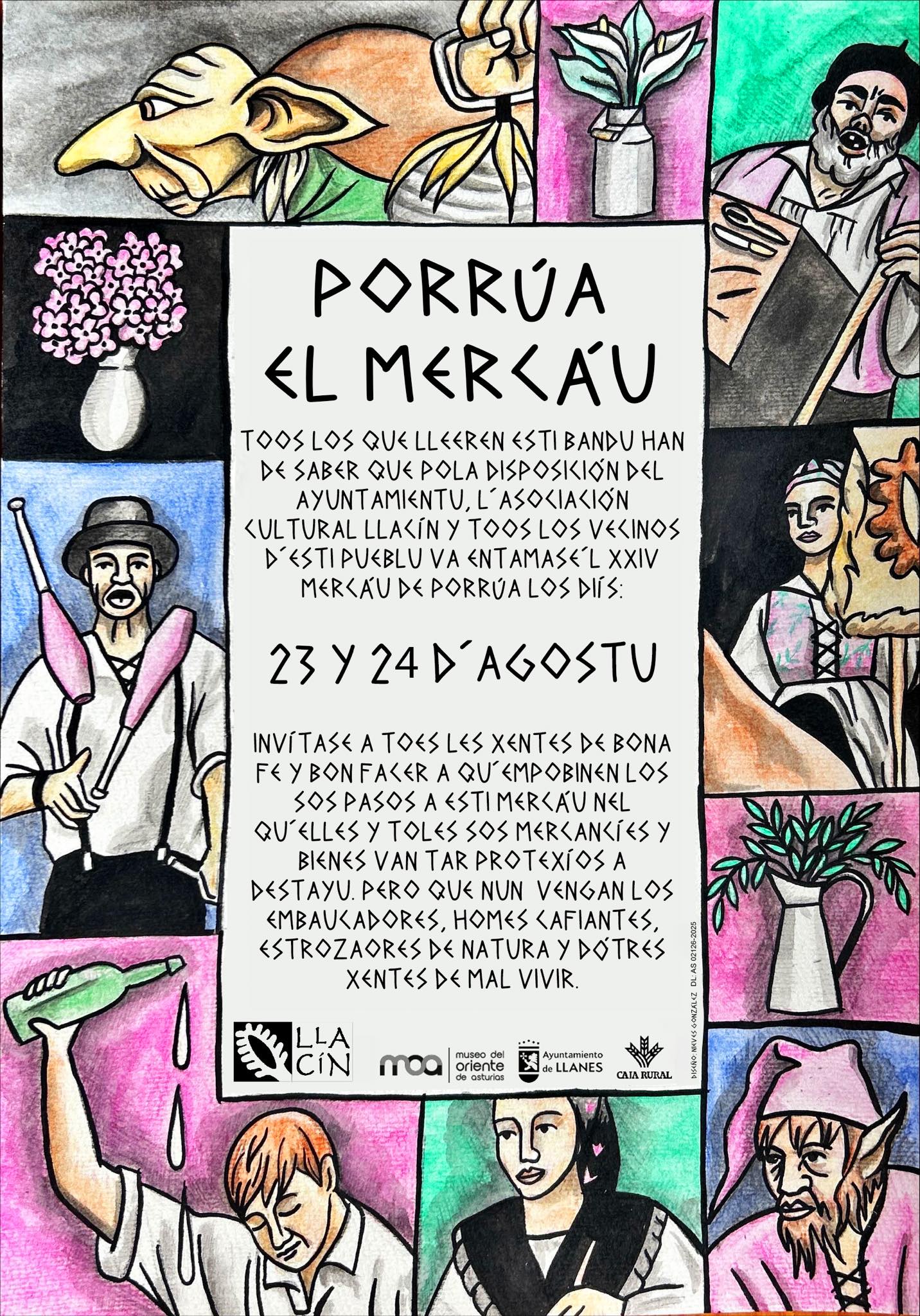 12:30 h. Pasacáis: Caballerías y burros, carru´l país, grupu folclore, mallabaristas, músicos, xigantones, teatro de calle.