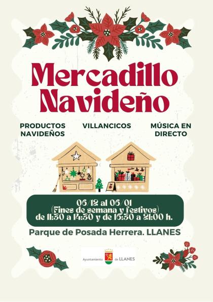 El mercadillo navideño estará instalado en el parque de Posada Herrera. Cuenta con casetas tradicionales para la venta de productos navideños, y estará amenizado por villancicos y música en directo.