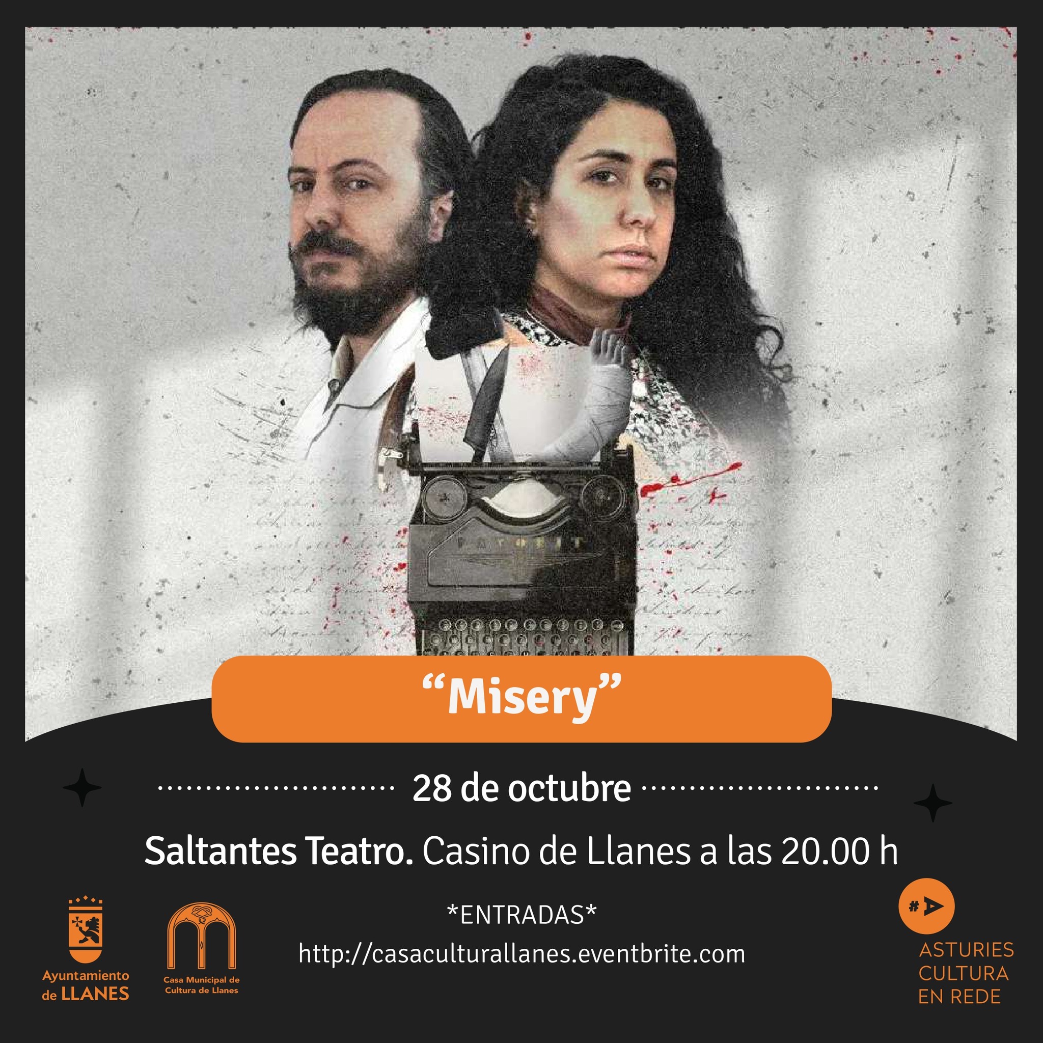Misery. Adaptación teatral que hace Saltantes Teatro de William Goldman sobre la novela de Stephen King. Una pieza de terror psicológico que hoy en día es considerada de culto.