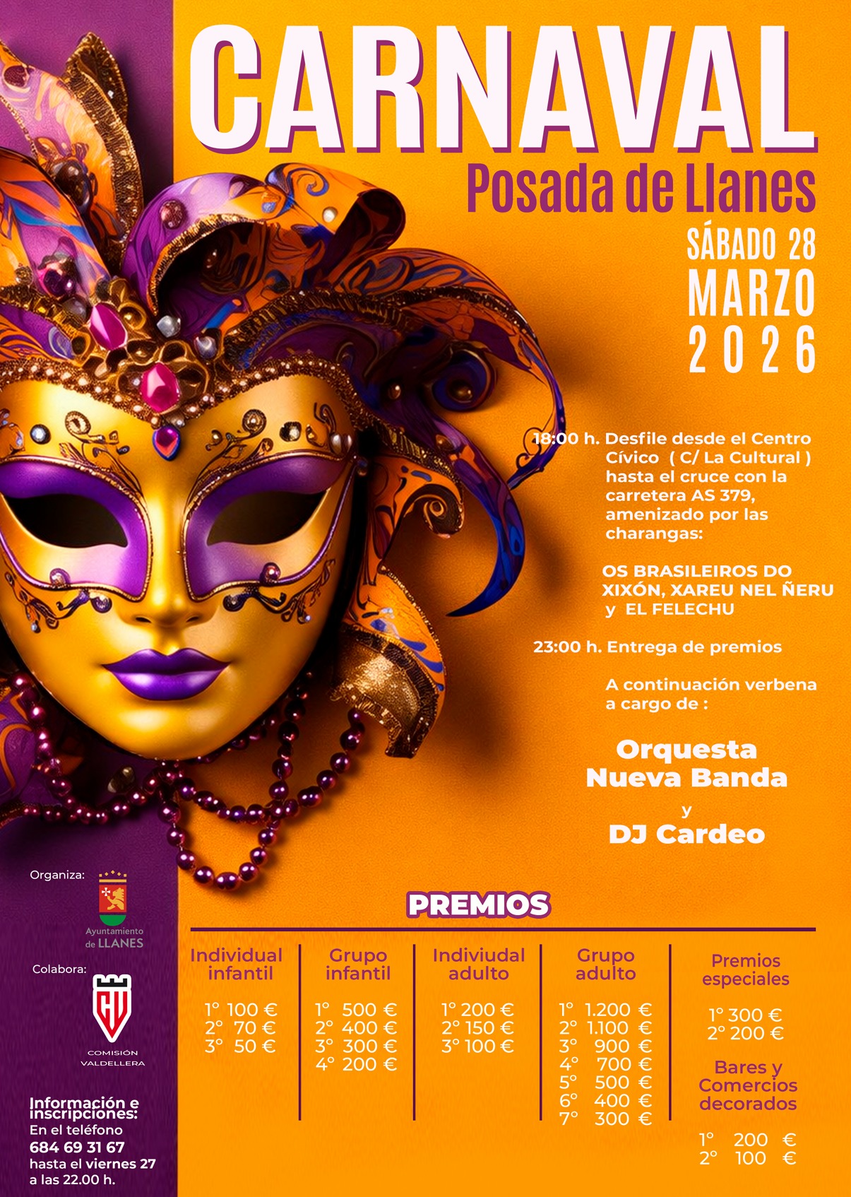 18:00 h. Desfile desde el Centro Cívico (C/ La Cultural) hasta el cruce con la carretera AS-379, amenizado por las charangas: OS BRASILEIROS DO XIXÓN, XAREU NEL ÑERU y EL FELECHU.