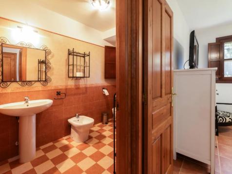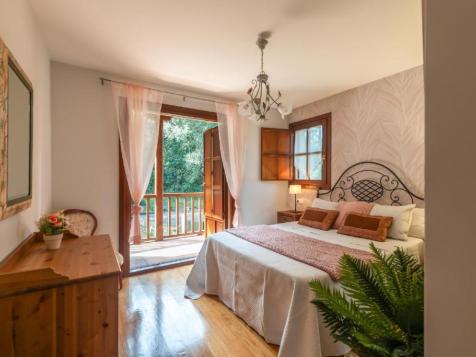 • Salón Acogedor: Equipado con TV, chimenea de pellet, cómodos sillones y zona de comedor.