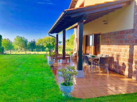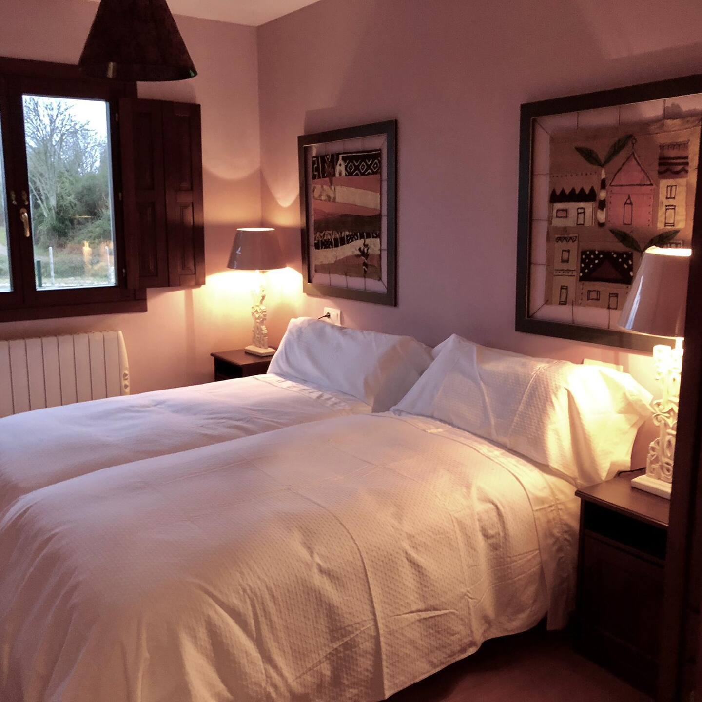 Distribución: En la planta de arriba, dos habitaciones con vestidor y baño (con dos camas individuales, con posibilidad de cama queen, bajo pedido y sin coste) y una salita, entre las habitaciones. En la planta baja, cocina, habitación y baño, y salón comedor. Exterior: Dos porches y piscina