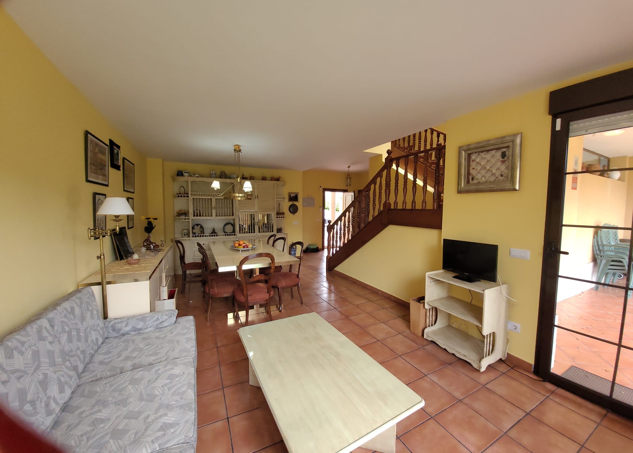 - Planta Baja: salón con zona de comedor y chimenea, una cocina completamente equipada incluso con lavavajillas, un aseo, y acceso directo al jardín y porche cubierto.