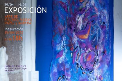 - VIERNES 29 a las 18:00; INAUGURACIÓN EXPOSICIÓN. Arte de fieltro, vidrio, papel y madera (del 29 de abril al 14 de mayo).
