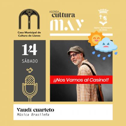-Sábado 14 de mayo: Concierto de Vaudí cuarteto, música brasileña. A las 12.30 horas en el patio de la Casa Cultura de Llanes (en caso de lluvia en el Salón del Casino). Entrada gratuita, previa reserva en: http://http://casaculturallanes.eventbrite.com