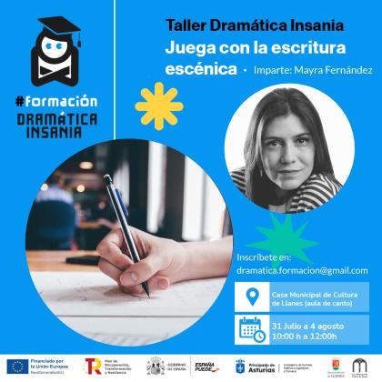 ¿Cómo tienes la semana del 31 de julio al 4 de agosto? ¡Tenemos planazo en Llanes! Taller de Dramática Insania con Mayra Fernández. JUEGA CON LA ESCRITURA ESCÉNICA y disfruta de una refrescante experiencia zambulléndote en la escritura dramática, aprendiendo y divirtiéndote con Dramática Insania. Del lunes 31 de julio a viernes 4 de agosto, de 10:00h a 12:00h... Y luego ¡a la playa!