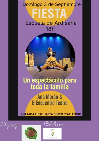 El domingo 3 de septiembre, a las 18:00 h. en la Escuela de Ardisana, espectáculo para toda la familia "Fiesta" por Ana Morán & ElEncuentro Teatro.