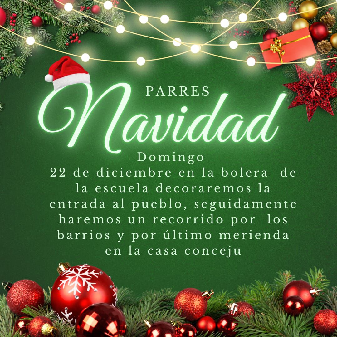 El domingo 22 de diciembre, a las 16:00 h. en la bolera de la escuela, quedaremos para poner adornos de Navidad en la entrada de Parres. Convocamos a todos los cri@s y sus familias para participar y llevar adornos. Después daremos una vuelta para ver las casas adornadas, pedir el aguinaldu y vender papeletas del sorteo de la fiesta de Sta Marina. Terminaremos el día con merienda y baile en la Casa Conceju. Animamos a tod@s a participar y celebrar este encuentro navideño.