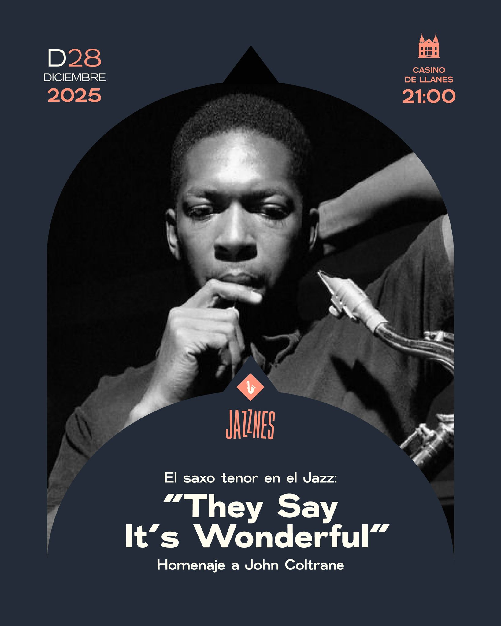 21:00 h. - Casino de Llanes: El saxo tenor en el Jazz: “They say It´s wonderfull". Homenaje a John Coltrane.