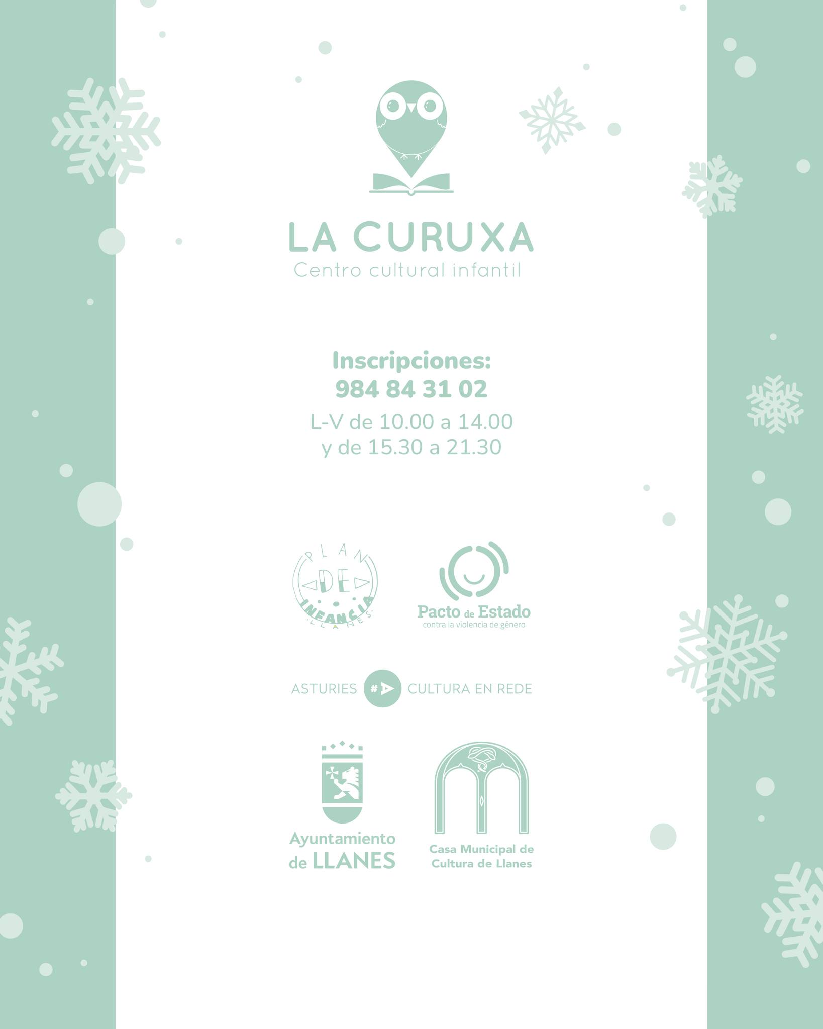 - Inscripción telefónica (salvo Animación a la lectura, que es de acceso libre): 984 84 31 02 · L–V 10:00–14:00 y 15:30–21:30.