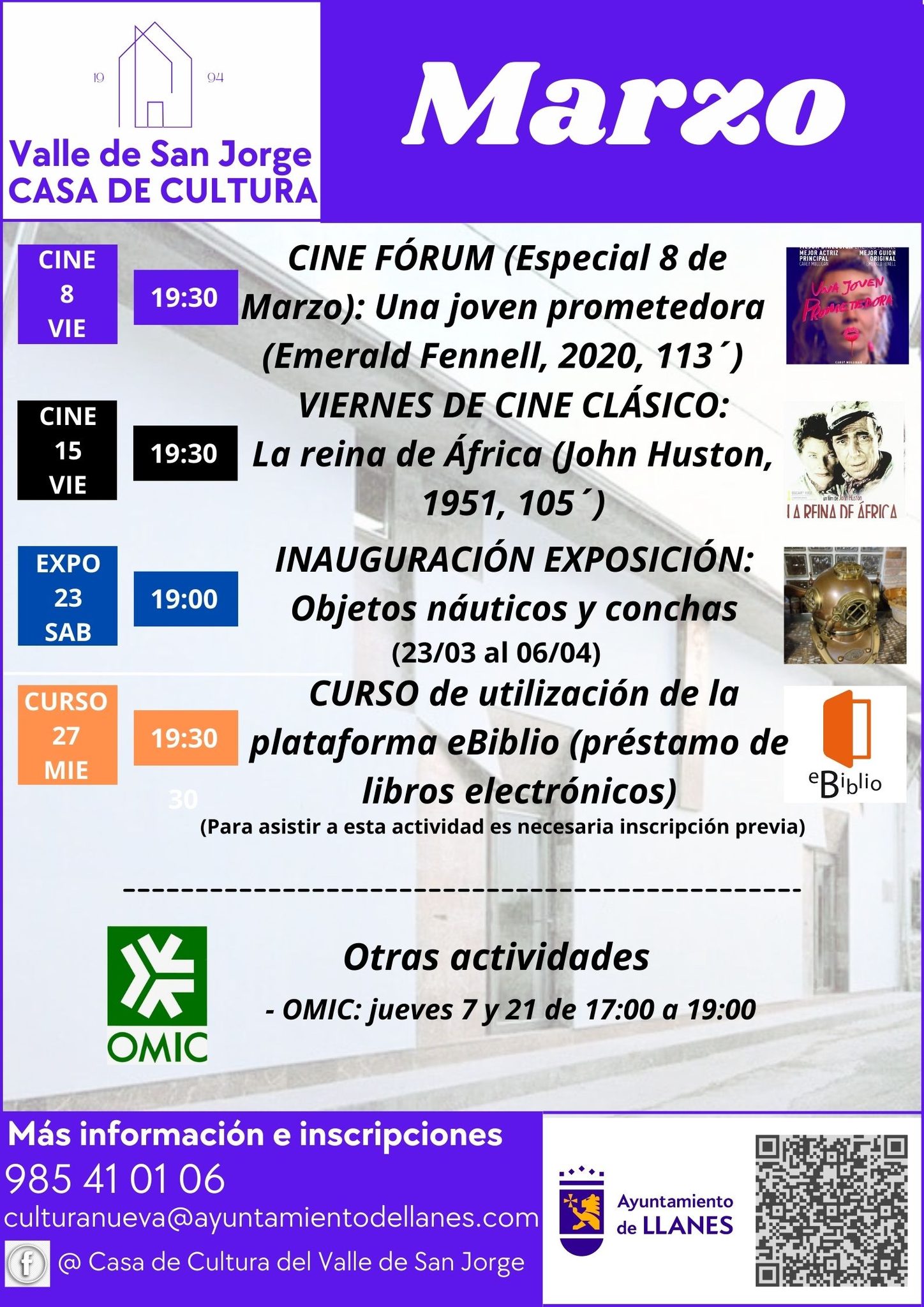 Por su parte, los miércoles 6, 13, 20 y 27 de marzo ambos talleres se ofrecerán en Llanes, en las instalaciones de la Escuela Municipal de Música, en horario de 17:00 a 19:00 horas.