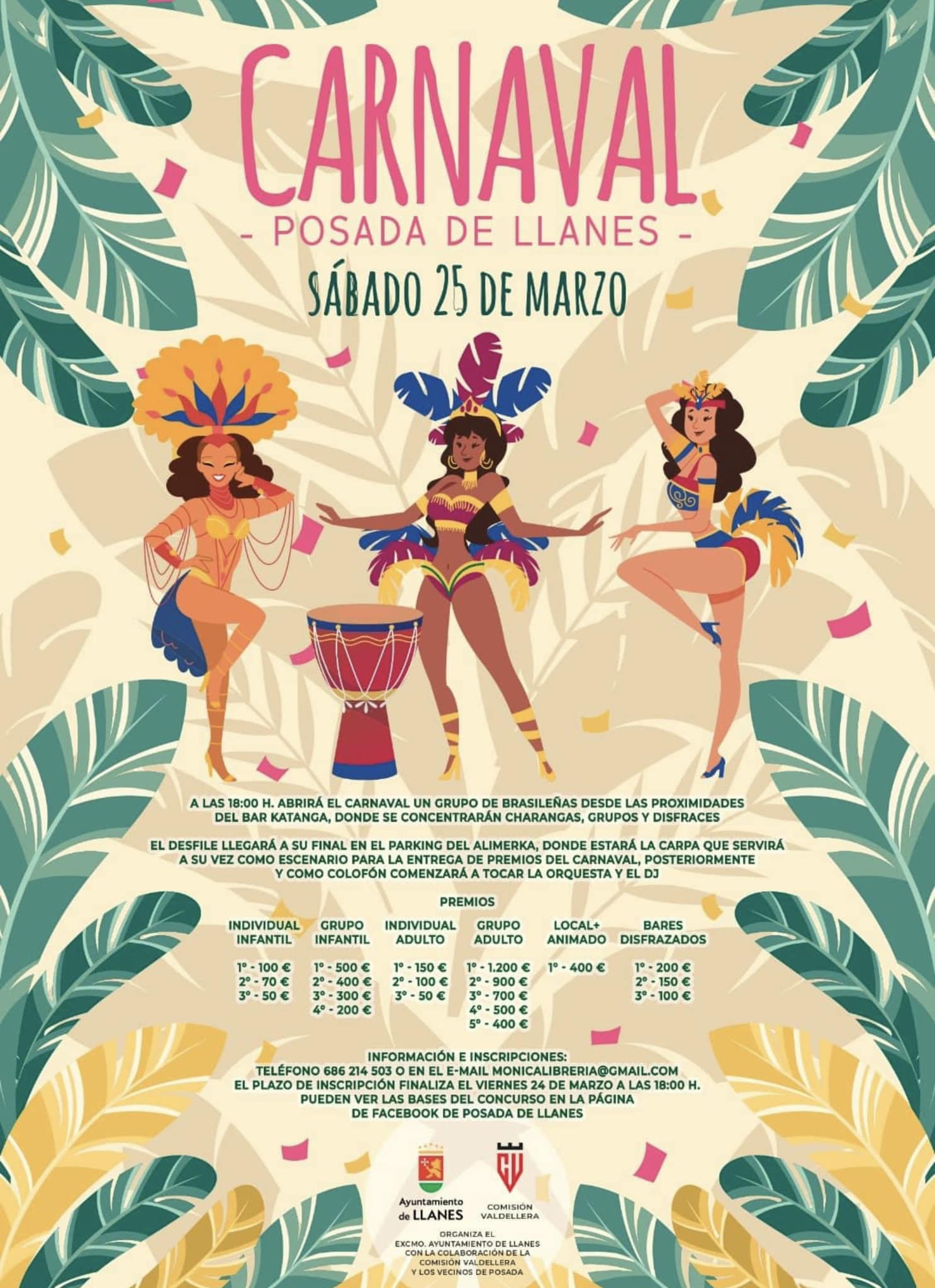 1. El Ayuntamiento de Llanes convoca el Concurso de Disfraces “Carnaval Posada de Llanes 2023” con la colaboración de Comisión de Fiestas Valdellera de Posada. Podrán participar cuantas personas lo deseen con el único requisito de inscribirse previamente llamando al teléfono: 686 214 503 o en el E-mail: monicalibreria@gmail.com. El plazo de inscripción finaliza el viernes 24 de marzo a las 18:00 h.
