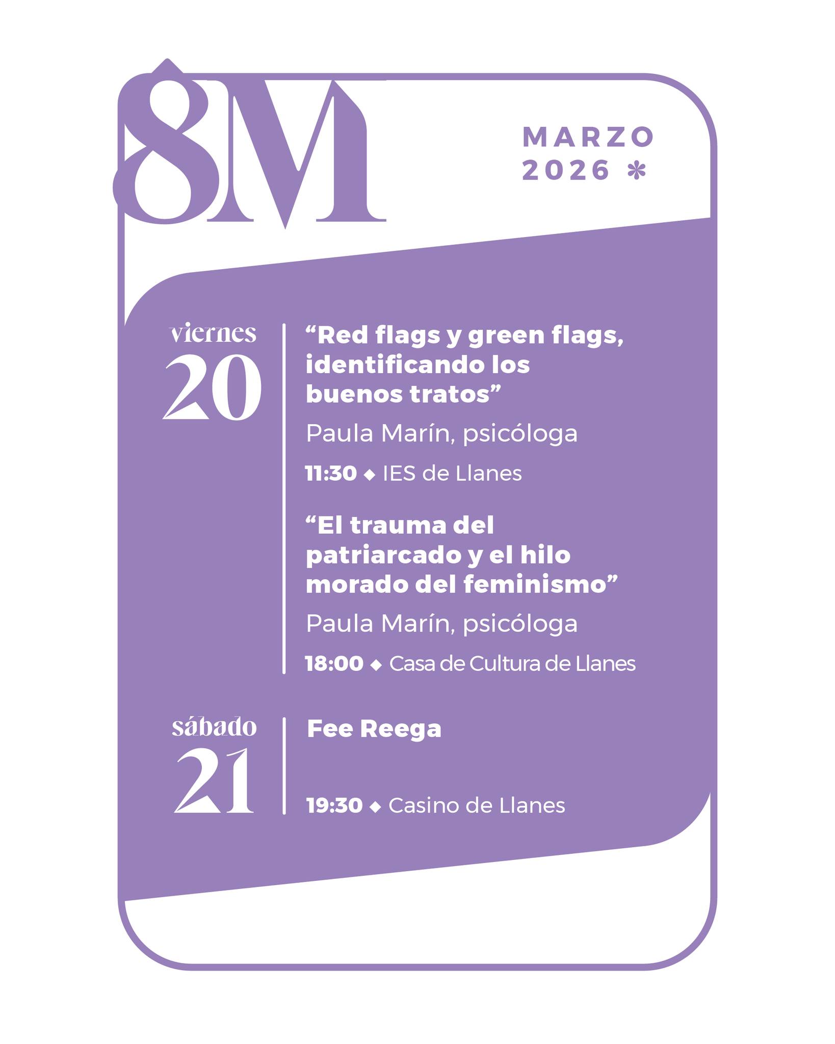 Marzo 2026 | Programación 8M en Llanes