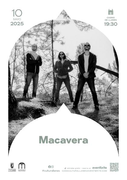 Macavera es una banda asturiana de pop/rock, en formato trío, que vio la luz como proyecto en 2018. Sus integrantes: Carlos Suárez (bajo y coros), Arturo Ávila (batería) y Álvaro Masó (guitarra y voz) formaron parte de otras bandas de la región como son Verde Cannaia, Alberto&García, The Paperbacks... y cuentan con años de experiencia en el panorama musical regional y nacional participando en diversas programaciones de salas y festivales.