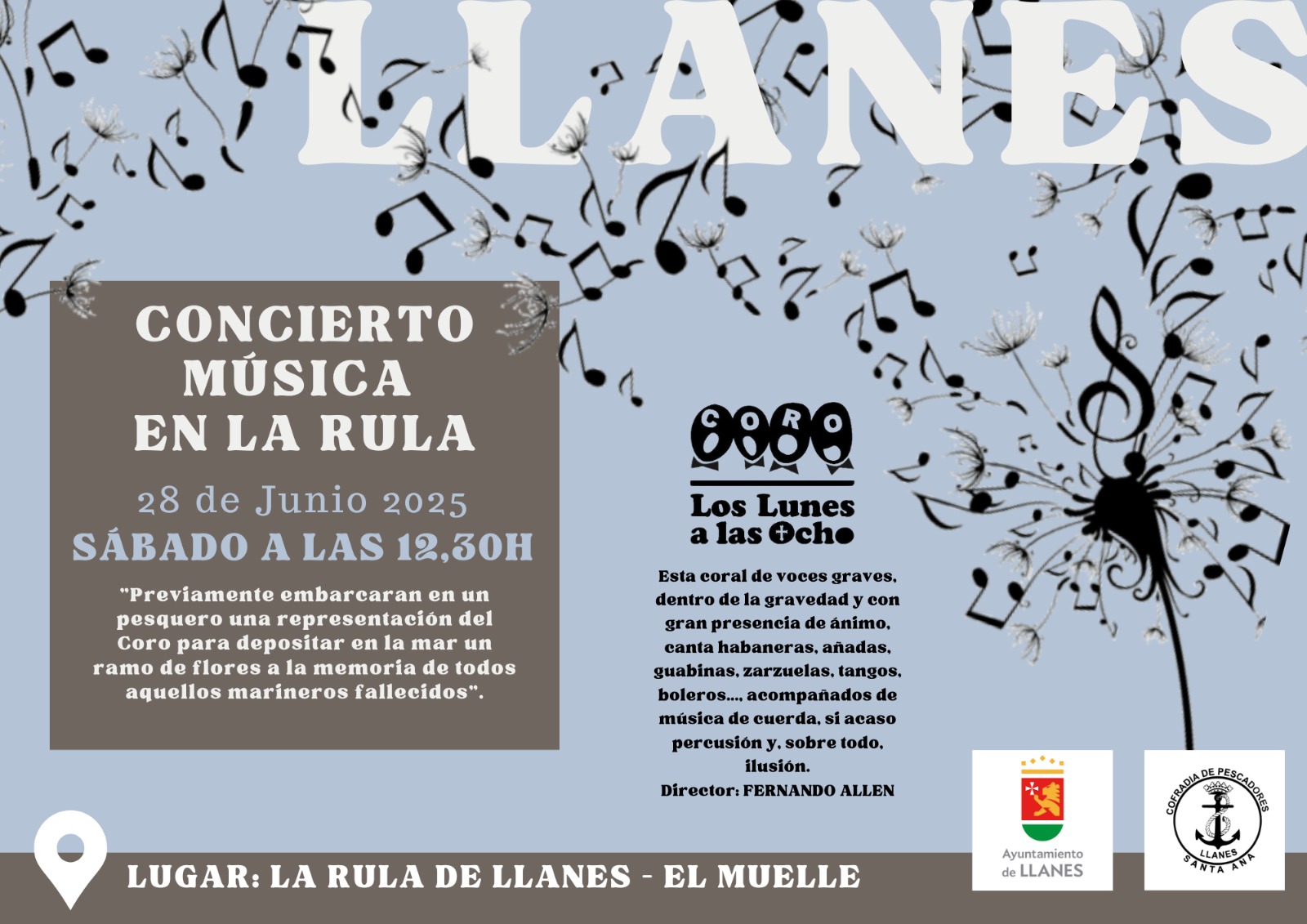 Antes del concierto, a las 12:00 horas, una representación del coro realizará un emotivo acto: embarcarán en un pesquero para depositar un ramo de flores en el mar, en memoria de todos los marineros fallecidos. Un tributo conmovedor que nos recordará la esencia de nuestra costa.