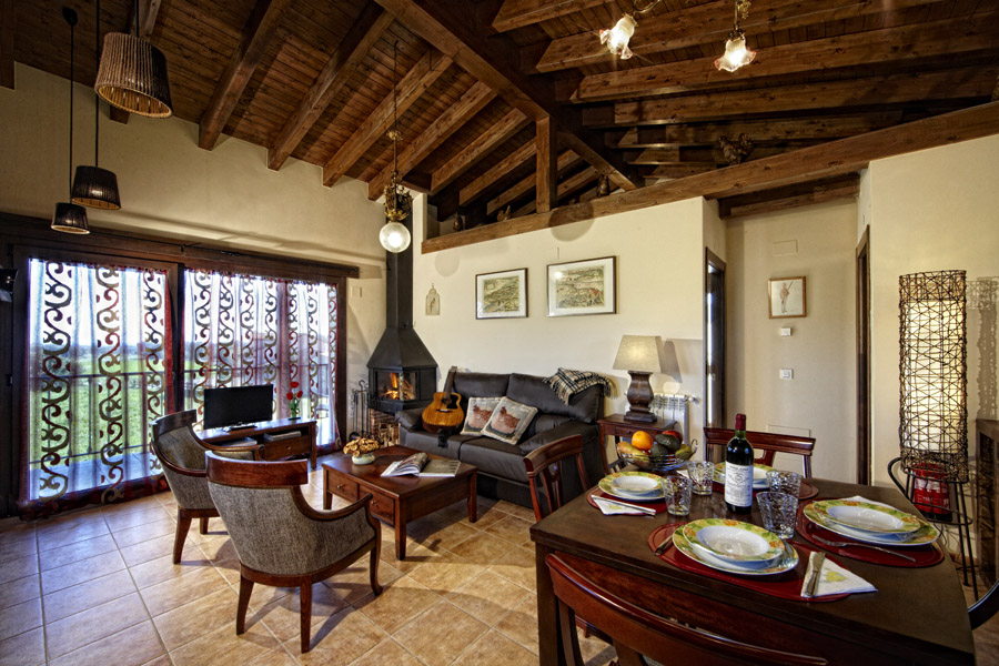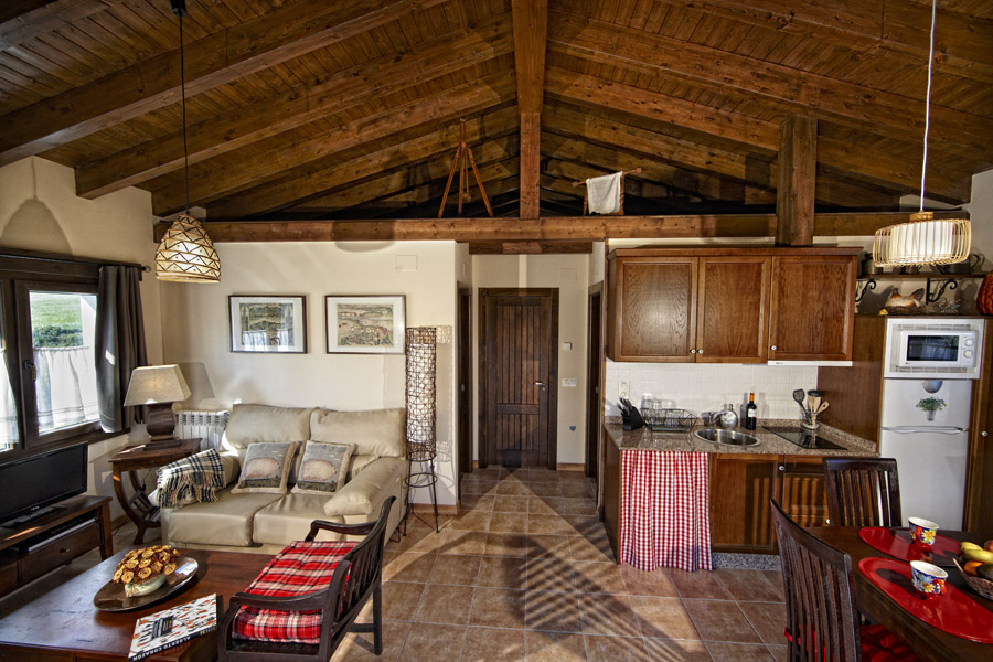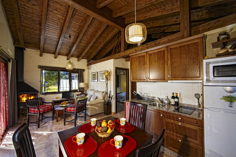 Todas las casas están en planta baja y tienen el mismo equipamiento con salón-comedor, cocina, baño y 2 dormitorios (uno con cama de matrimonio y el otro con dos camas individuales), a excepción de la casa-suite «El Roble», que está en planta primera, tiene un solo dormitorio de matrimonio, sofá-cama de 135 cm. en el salón y una espectacular terraza cubierta, con vistas al mar y a la montaña.