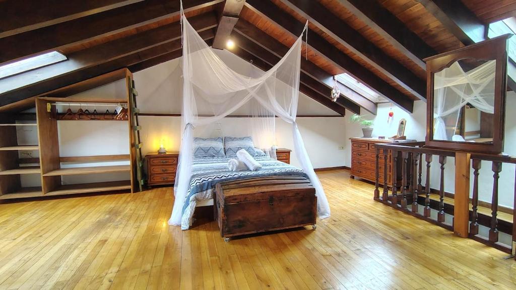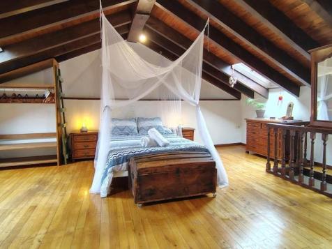 La segunda planta consiste en una habitación abuhardillada con cama matrimonial.