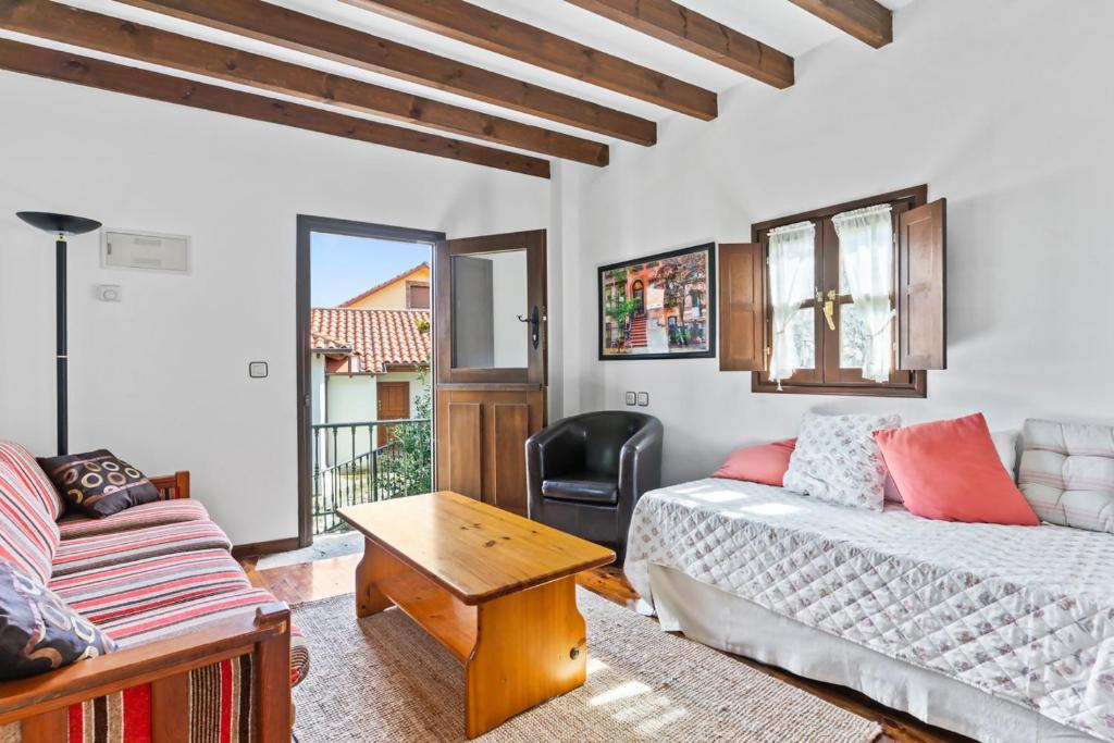 Primera planta (entreplanta): Subiendo unas escaleras, se accede a un acogedor dormitorio y un baño completo. En esta misma planta, un salón invita al descanso, ya sea leyendo un libro, disfrutando de una charla o simplemente relajándose tras un día de exploración.