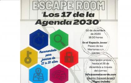 El programa Espacio Joven Llanes, para edades comprendidas entre 12 y 18 años, acoge un escape-room dedicado al tema “LOS 17 DE LA AGENDA 2030”.
