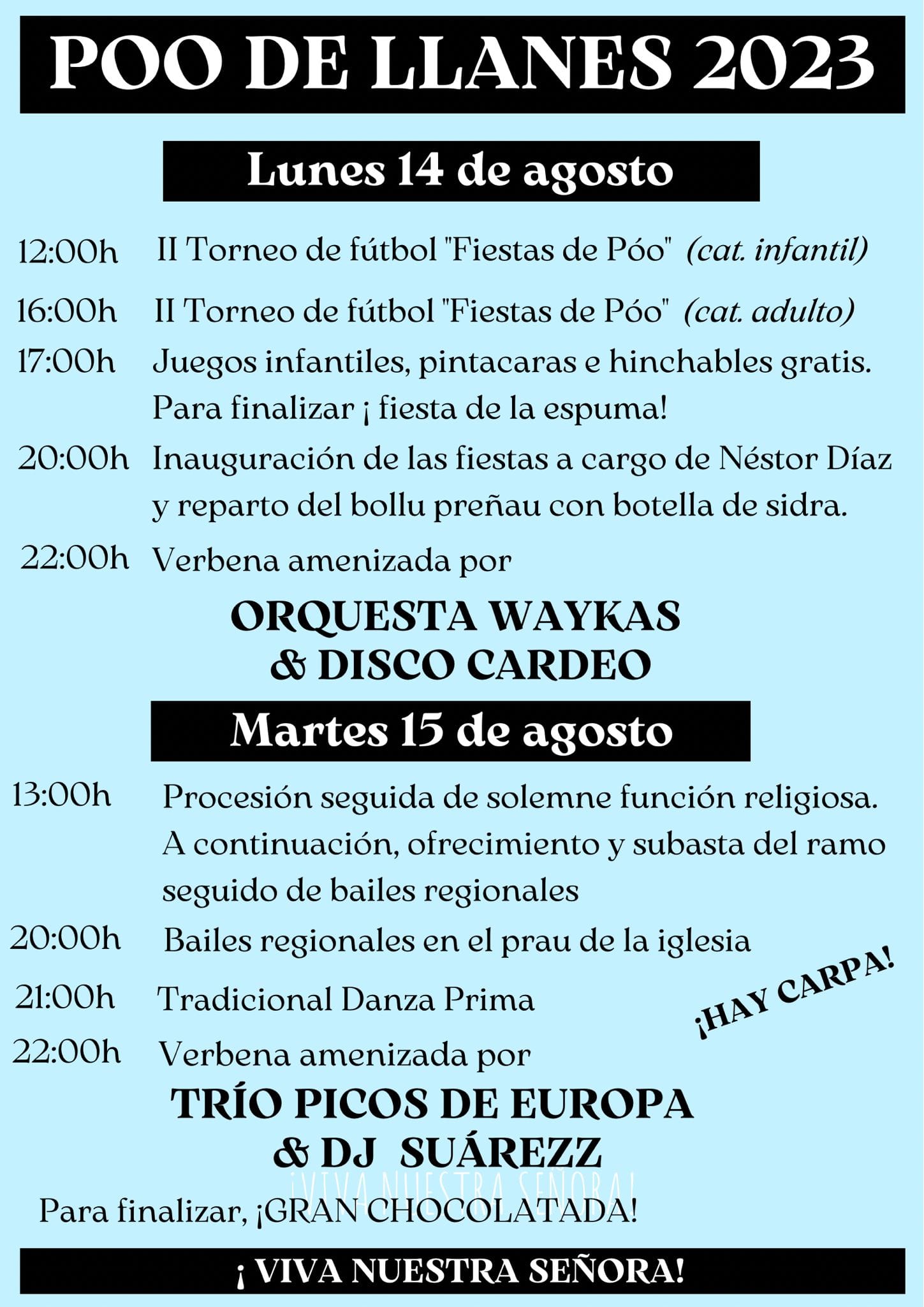 20.00 h. Inauguración de las fiestas y venta del bollu preñau con botella de sidra, amenizada por la banda "LOS COLLAINOS".
