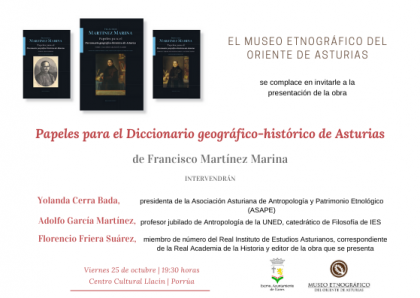 Intervendrán Yolanda Cerra Bada, presidenta de la Asociación Asturiana de Antropología y Patrimonio Etnológico; Adolfo García Martínez, profesor jubilado de Antropología de la UNED y Florencio Friera Suárez, miembro de número del Real Instituto de Estudios Asturianos, correspondiente de la Real Academia de la Historia y editor de la obra que se presenta.