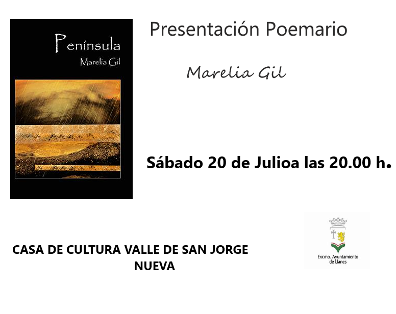 - Presentación del poemario Península, de Marelia Gil. (Sábado 20 de julio a las 20.00 horas en la Casa de Cultura de Nueva).