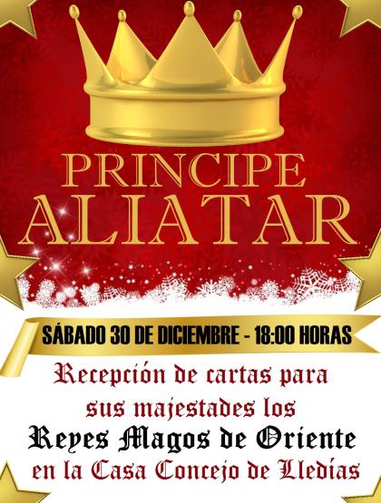 Sus Majestades los Reyes Magos de Oriente han encargado al Príncipe Aliatar que realice una recepción real en la Casa Concejo de Lledías, el sábado 30 de diciembre a las 18:00 h., para recoger todas las cartas que los más pequeños quieran enviarles con sus deseos.