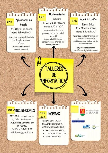 Taller formativo en el Cdtl Llanes (Telecentro) a lo largo de los días 19 y 20 de febrero, en horario de 9:30 a 11:00 h.