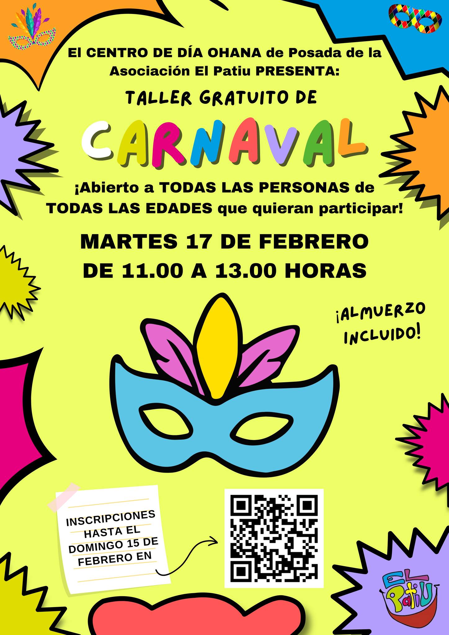 El Centro de Día OHANA de Posada de Llanes acoge el MARTES 17 DE FEBRERO DE 11.00 a 13.00 horas una ACTIVIDAD COMUNITARIA abierta a TODAS LAS PERSONAS QUE QUIERAN PARTICIPAR, y que consistirá en un taller de Decoración de Máscaras de Carnaval