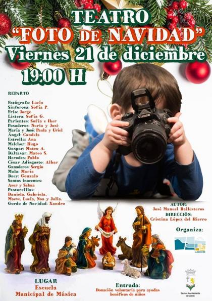 A las 19.00 h. en la Escuela Municipal de Música la obra de TEATRO "FOTO DE NAVIDAD" dirigida por Cristina López del Hierro.