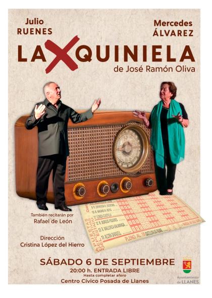 El sábado, 6 de septiembre, Mercedes Álvarez y Julio Ruenes volverán al Centro Cívico de Posada de Llanes con una obra de género costumbrista, original de José Ramón Oliva, y bajo la dirección de Cristina López del Hierro: "La Quiniela".