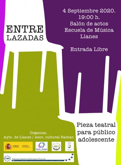El viernes 4 de septiembre a las 19.00 horas en el salón de actos de la Escuela Municipal de Música de Llanes, también con entrada libre, se representará “Entrelazadas”, una pieza teatral para público adolescente.